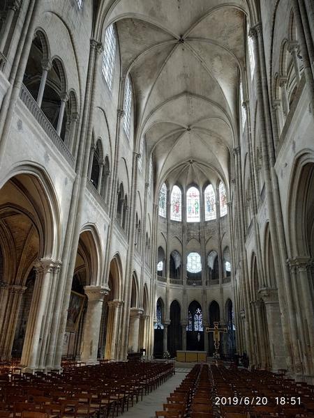 Description | Cette église rappelle la cathédrale Notre-Dame de Paris par le style et par son élévation sur trois niveaux. La collégiale Notre-Dame se compose, au-delà du massif de façade, d’une nef de sept travées voûtées d’ogives sexpartites flanqués de collatéraux voûtés d’ogives quadripartites. Le haut vaisseau est à trois niveaux : grandes arcades en arcs brisés reposant sur une alternance de piles faibles et piles fortes, tribunes voûtées d’ogives quadripartites et en berceaux brisés transversaux, et enfin fenêtres hautes en arc brisé. Le chevet, qui vient compléter la composition, n’était originellement ceint d’aucune chapelle. Les chapelles rayonnantes, ainsi que celles des bas-côtés sont des adjonctions des XIIIe et XIVe siècles. La façade occidentale est percée de trois grands portails sculptés surmontés d'une rose, que viennent couronner deux tours dont l'aspect a été profondément modifié par les restaurations du XIXe siècle. Cette disposition s'inspire du modèle de la cathédrale de Laon. Le portail central, dédié à la Vierge, a été fortement endommagé pendant la Révolution. |