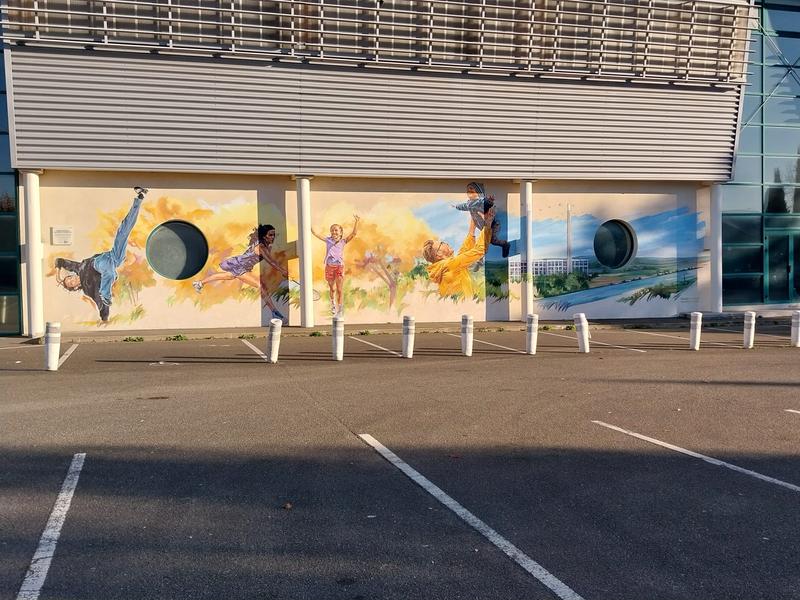 Description | La peinture murale est bien plus qu’un simple art visuel : c’est un puissant outil de communication qui rassemble habitants et visiteurs autour de l’identité d’une ville et de son histoire. Elle crée du lien social, invite à l’échange et offre une plateforme où chacun peut se reconnaître et dialoguer. Depuis 20 ans, nous avons eu la chance de constater combien une œuvre murale peut fédérer des individus autour d’un thème commun : leur ville. C’est dans cet esprit que nous (Elodie Iwanski d'Art et Sens Mural") avons imaginé « Panoramique sur Porcheville ». Ce projet mêle histoire, patrimoine, transmission culturelle et valeurs sociales pour créer une fresque intergénérationnelle. Nous avons intégré un univers coloré et dynamique pour faire dialoguer passé et futur, industrie et nature, tout en mettant en avant les dimensions humaines de la communauté, comme le sport, le respect et le partage. Les cheminées d’EDF rappellent le patrimoine industriel de Porcheville, tandis que la végétation symbolise le rôle essentiel de la nature dans les parcs environnants. Le hip-hop représente la jeunesse et l’avenir, tandis qu’un père avec son fils incarne le lien familial et la transmission. Le sport, quant à lui, illustre le dépassement de soi, le respect et la solidarité. Cette fresque raconte l’histoire d’une ville unie dans sa diversité, tournée vers un avenir durable et solidaire. « Savoir d’où l’on vient, c’est savoir où l’on va. » |