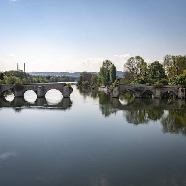 En traversant l’île de Limay, via la passerelle, vous remarquez le vieux pont brisé, vous êtes maintenant sur un sentier du parc naturel du Vexin, la nature s’offre à vous loin du tumulte urbain.