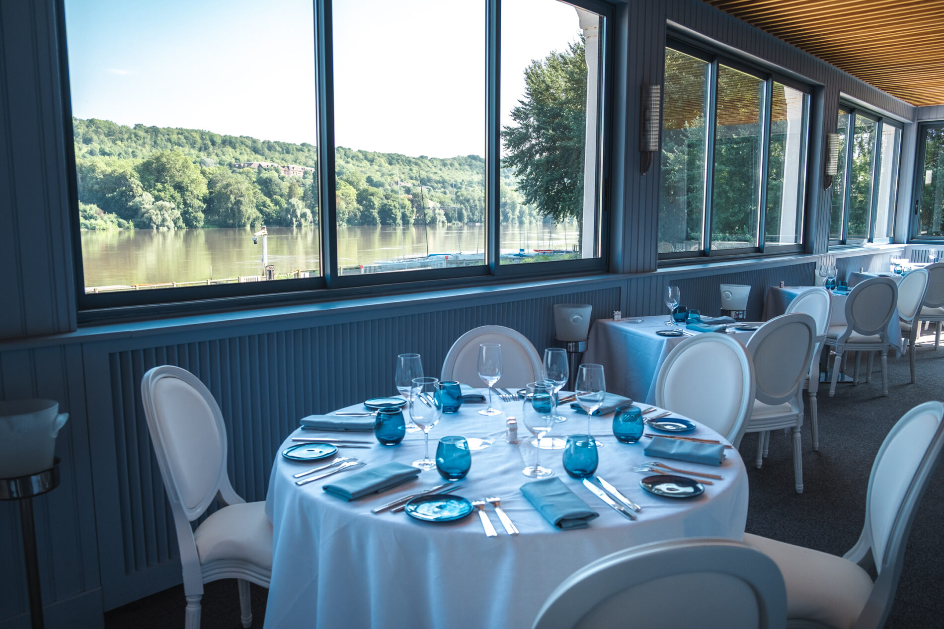 Entre Seine et côteaux, le restaurant gastronomique LES VOILES à posé ses amarres sur un site à coupé le souffle, mais pas l’appétit ! Le regard prend le large face au paysage, la partie de la Seine la plus large de la région parisienne avec en face les belles demeures de Meulan. Entouré de bateaux du Yatch Club d’Île de France, le cadre apaise et donne envie de prendre la barre. La table est gourmande et raffinée, idéale pour un repas d’affaires ou un déjeuner d’équipe.